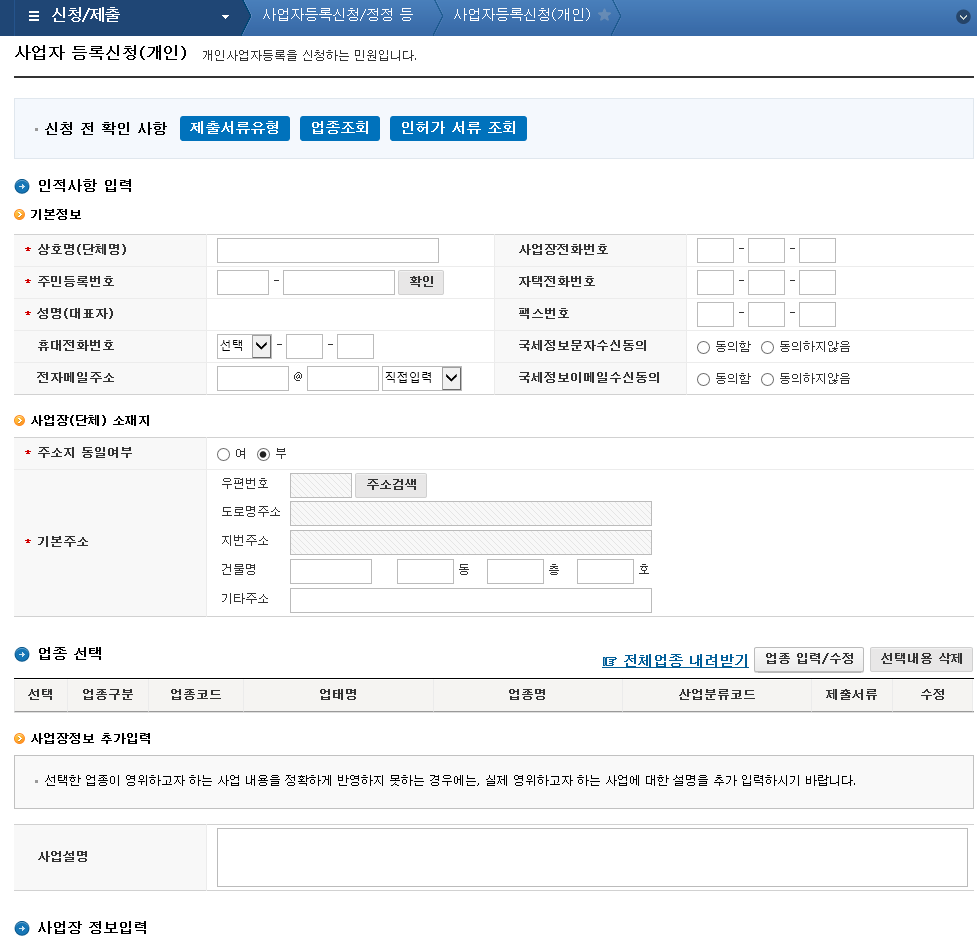 개인사업자등록 신청방법