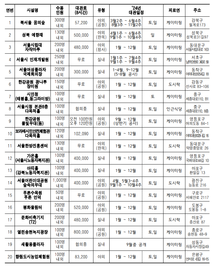 서울시가 2024년 공공예식장 대관일정을 공개하였습니다.
