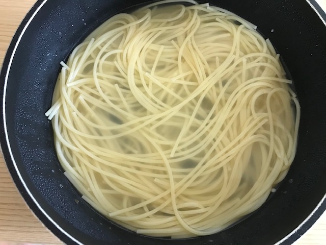 1. 스파게티면 160g을 5분 정도 삶아줍니다.