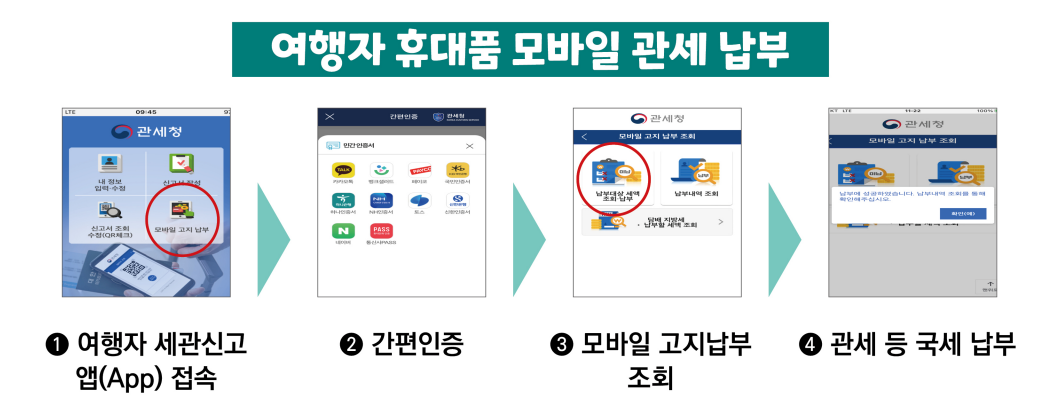 1. 여행자 세관 신고 앱 접속 후 모바일 고지 납부 클릭